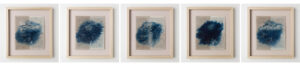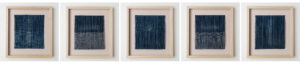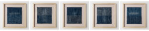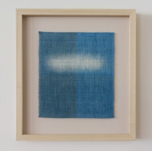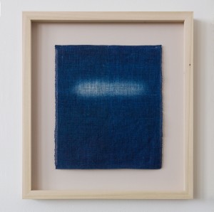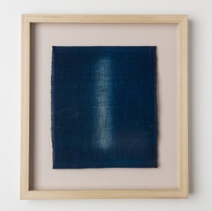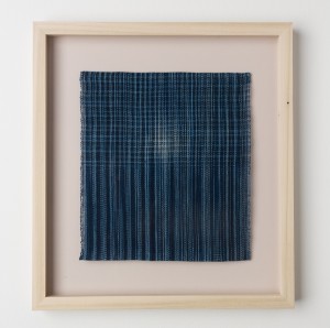 3/29/15 – 1/5/16 is a series of 30 weavings, each of which was placed in a box with a slit or hole cut in the top. The boxes were then placed in the greenhouse where I start the seedlings and winnow the harvested indigo on the day that I planted seeds this past growing season. The weavings were left in place until the year’s composting was complete. As very long exposures, these weavings capture in their fading the beautiful contradiction of time necessary to create their color and its inevitable demise.