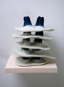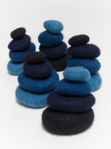 Untitled Stones Indigo dyed wool, stones, hand felted. 2006 6″ x 6″ x 6″ per stack